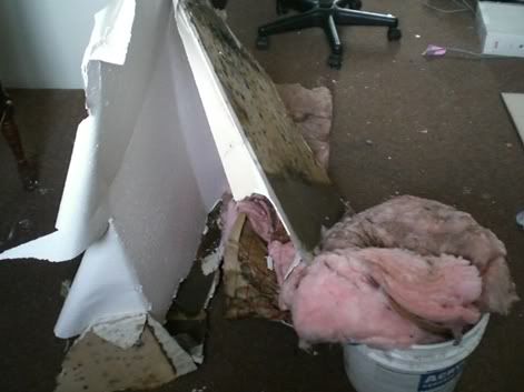 Unos minutos después mi hermano señaló a una gotera casi arriba de mi cabeza, y para cuando regresé con una cubeta caía ya un chorrito de agua más persistente; voltié a ver el techo y noté que se había hinchado toda una sección.